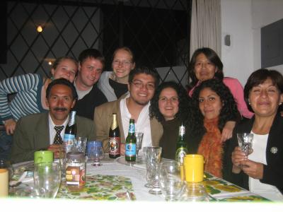 Der Abschluss meiner ersten Zeit in Quito war sehr rührend, denn meine Gastmutter hat noch mal meine/ihre (sie unterscheidet da wirklich nicht so) Familie, ecuadorianschen Freunde, meinen Spanischlehrer und dazu noch Kathrin und Miriram von der Sprachschule eingeladen und ein Essen gekocht, um einen schönen Abschluss zu haben. Wie geil!